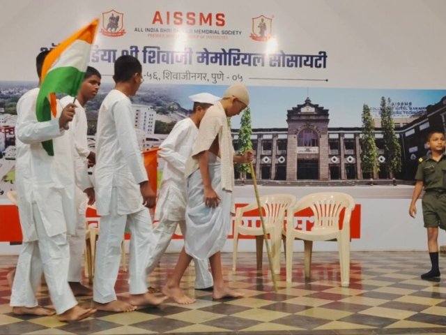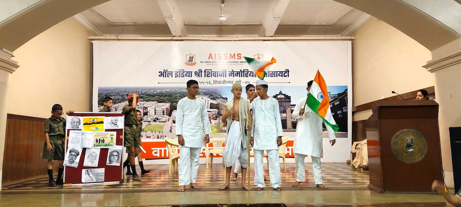 Honoring the legacies of Mahatma Gandhi and Lal Bahadur Shastri on their Jayantis at Shri Shivaji Preparatory Military School. The event began with the lighting of the lamp and garlanding of their portraits, followed by inspiring speeches from the Principal, teachers, and students. A heartfelt bhajan performance of ‘Raghupati Raghav Rajaram’ by the 5th std boys and a special screening of Mahatma Gandhi’s autobiography brought alive their timeless messages of truth and simplicity.
