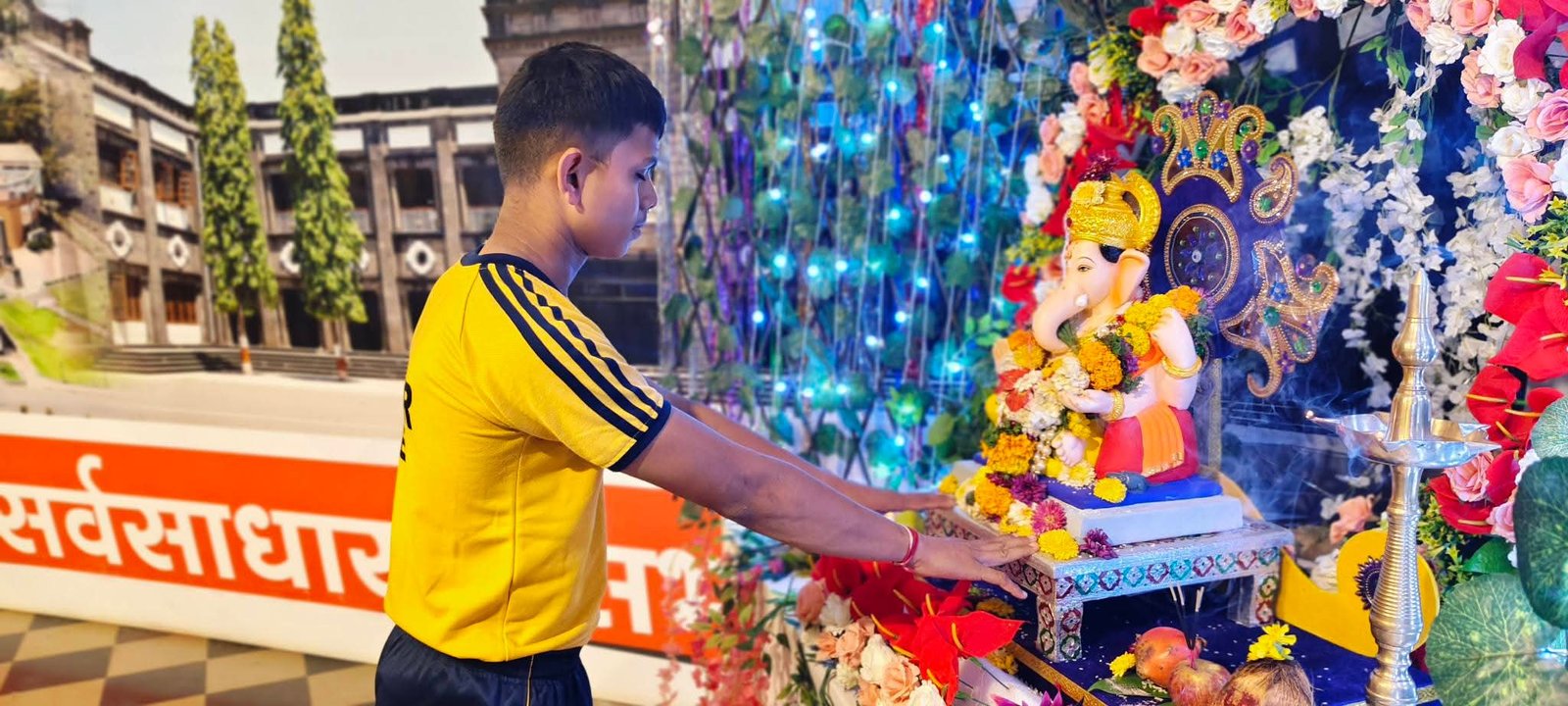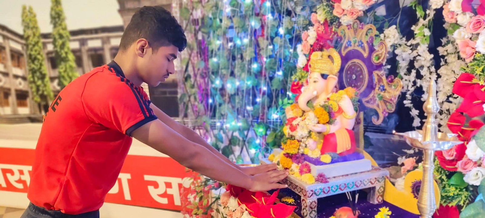 Ganapati Pratishthapana at Shri Shivaji Preparatory Military School was celebrated with devotion and joy. The idol pujan and aarti were performed during the aagman ceremony by our Respected Principal Sir, Supervisor, House Perfects, staff and students. 🌸🎶