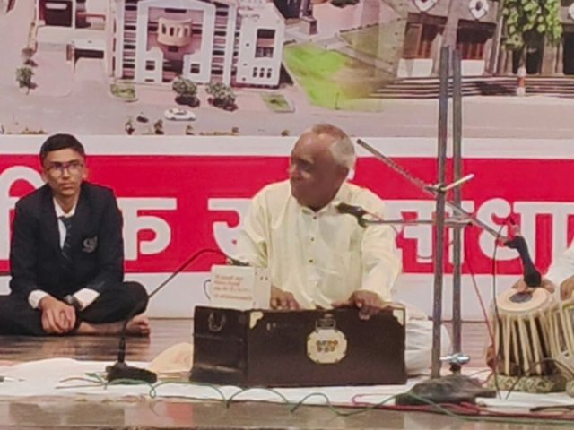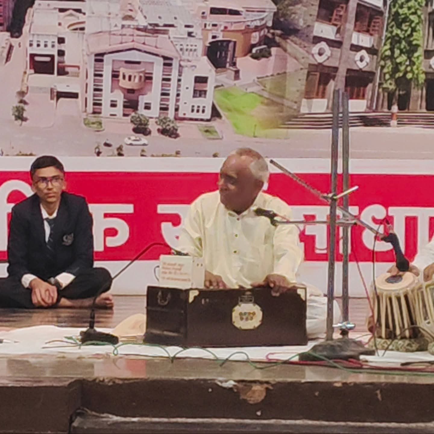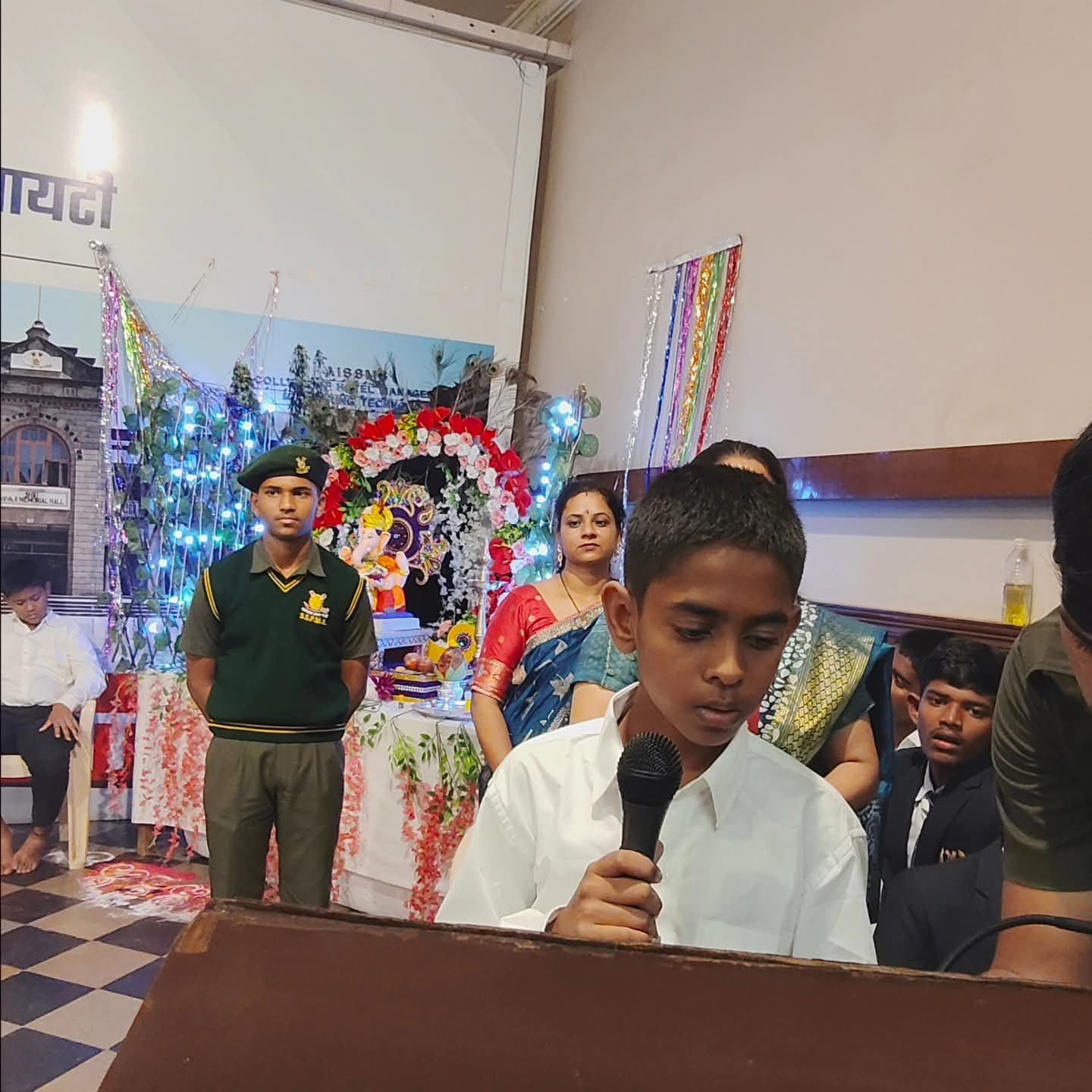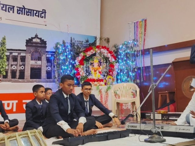 The celebration was further enriched with a divine Santawani Programme by Haribhakt Pandit Mukundrao Bhagat, grandfather of our student, who offered soulful bhajans in devotion to Lord Ganesha. 🌸🙏