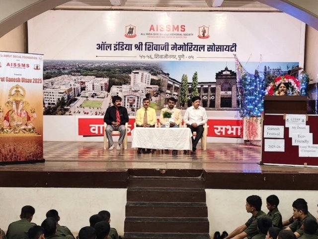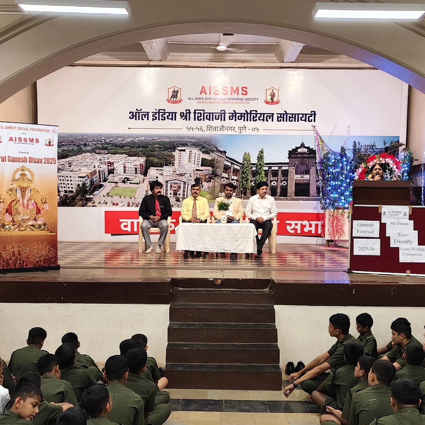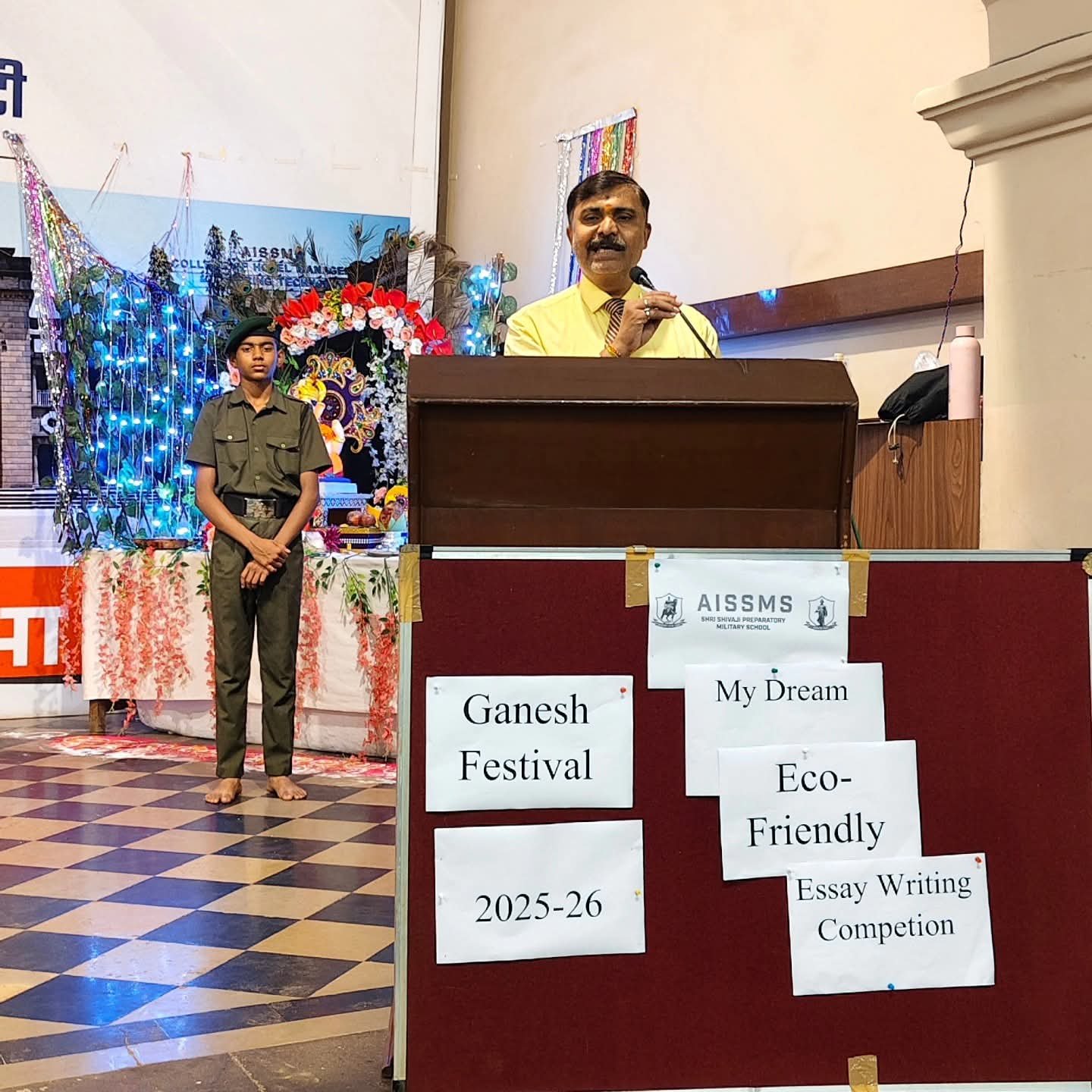 At Shri Shivaji Preparatory Military School, an Essay Writing Competition on the topic “My Dream Eco-friendly Ganesh Festival” was organized under Amrut Ganesh Utsav 2025, presented by Amrut Social Foundation and AISSMS College of Engineering. 📝🌸