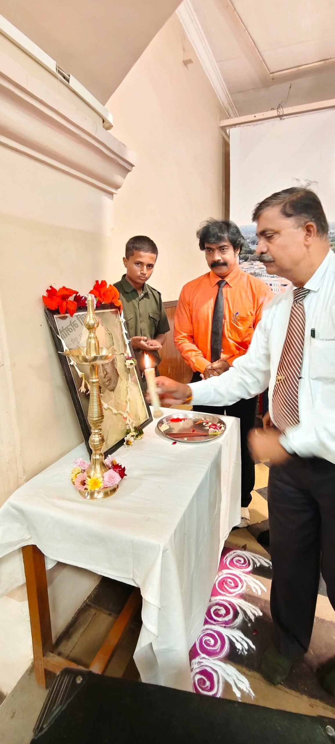 An exhibition of rare photographs of Chhatrapati Shahu Maharaj and drawings by students was also presented in the assembly hall, enriching the celebration with creativity and history.